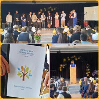 Im Rahmen einer feierlichen Entlassungsveranstaltung wurden am Freitag, den 20.06. die Abschlussschülerinnen und -schüler aus der Oberschule am Buchwedel verabschiedet. Und so fanden sowohl die Schülervertreter*innen, als auch die Lehrkräfte und die Schulleitung anerkennende Worte für die tollen Leistungen der Absolventinnen und Absolventen, die gleichzeitig auf eine schöne Schulzeit an der Oberschule am Buchwedel zurückblickten. Die beiden 10. Klassen wurden seit der Einschulung an der OBS am Buchwedel von ihren Klassenlehrkräften begleitet, entsprechend emotional war der Anlass für die Schülerinnen ebenso wie für die Klassenlehrkräfte. Für das musikalische Rahmenprogramm sorgten die Absolventinnen und Absolventen mit Gesangseinlagen und Klavierstücken selbst. Nach der emotionalen Zeugnisübergabe gab es die Gelegenheit für die Schülerinnen und Schüler, die Eltern und die Lehrerinnen und Lehrer gemeinsam anzustoßen und die Feier ausklingen zu lassen. Zu diesem Anlass hat wie jedes Jahr der Schulverein ein Getränkebuffet organisiert. Herzlichen Dank dafür sowie an alle weiteren Mitwirkenden der Veranstaltung!