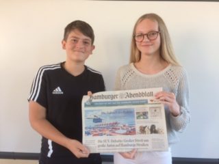 Seit diesem Schuljahr bekommt die Oberschule jede Woche zwei Ausgaben des Hamburger Abendblattes umsonst zu geschickt. Diese werden in der Schule ausgelegt und viele Lernenden nutzen die Möglichkeit, um sich über aktuelle Themen zu informieren.