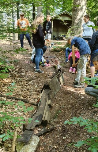 Die 5a war am Mittwoch im Buchwedel unterwegs. Vor Ort wurden gepicknickt und mehrere Natur-Murmelbahnen gebaut. Die Schülerinnen und Schüler nutzten dabei verschiedene Materialien und kamen zu tollen kreativen Ergebnissen.
