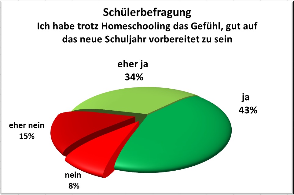 Die Mehrheit der Schüler*innen wurde bei der Arbeit der Aufgaben zu Hause zusätzlich unterstützt und hat das Gefühl gut auf das Schuljahr 2020/2021 vorbereitet worden zu sein.