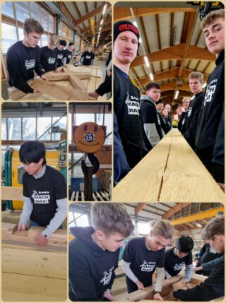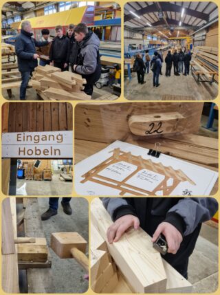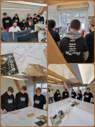 Einen eindrucksvollen Tag erlebten am vergangenen Dienstag die 10.-Klässler des WPK Profil Technik als sie endlich richtig loslegen durften. Im Rahmen der Teilnahme am bundesweiten Handwerkswettbewerb der Firma Würth, unter der Schirmherrschaft der Aktion Modernes Handwerk e. V., gab es nun die Gelegenheit, den zuvor geplanten Bienenstand in den hochmodernen Produktionsstätten der Firma Emil v. Elling Fachwerkhäuser in Winsen zu fertigen. Nach einem gemeinsamen Betriebsrundgang ging es in die Fertigungshalle. Hier wurden die Schüler zunächst zu Beobachtern der hochmodernen, computergesteuerten Abbund-Anlage, die die einzelnen Bauteile des Bienenstandes sägte und fräste. Auf der anderen Seite heraus kam „Lego für Erwachsene“, wie der Firmeninhaber Emil v. Elling das Fachwerk nannte. Gemeinsam wurde dieses nun noch von Hand weiter verarbeitet und auch schon teilweise für das Richten auf dem Schulgelände vormontiert. Dabei erhielten die Schüler umfangreiche und lehrreiche Erklärungen vom Chef persönlich. Am Ende wussten die Schüler nicht nur, wie Schlitz- und Zapfenverbindungen passgenau verbunden werden, sondern auch ebenso viel über Teamwork und Sicherheitsaspekte. Abgerundet wurde der facettenreiche Tag von dem Besuch in dem firmeneigenen Zeichenbüro, indem mit modernster Computerzeichentechnik die Vorgaben der maschinellen Produktion entstehen.