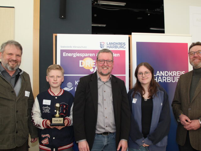 DrehAb! Energiesparprojekt des Landkreises: Die Oberschule bekommt erneut die „Goldene Glühbirne“ als Gewinnerschule überreicht.