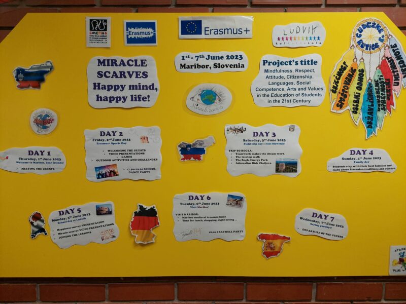 Unser Erasmus+ Projekt Miracle Scarves, das im Jahr 2020 startete, endete mit der letzten Mobilität im Juni in Slowenien mit dem vierten Baustein Happy mind, happy life! im wahrsten Sinne des Wortes wunderbar. Das Motto I feel Slovenia wurde tatsächlich gelebt und alle Teilnehmenden wurden eine Woche lang von den hervorragenden Gastgebern mit dem wunderschönen Land bekannt gemacht. Wir konnten in ein Land eintauchen, das außergewöhnlich grün ist und dessen stolze Bewohner an vielen Traditionen festhalten.
