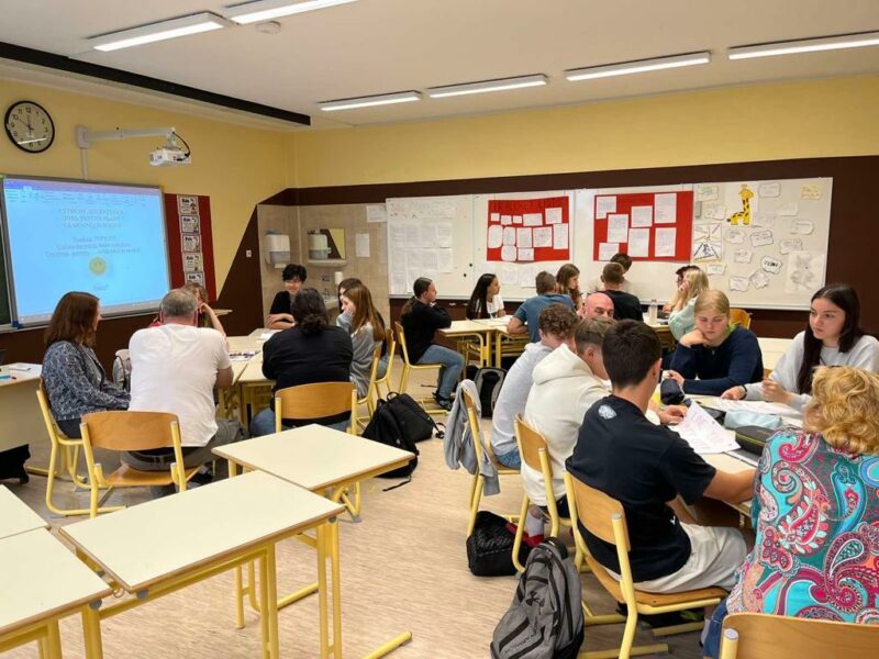 36 Schüler und Schülerinnen und 9 Lehrkräfte aus den vier teilnehmenden Ländern trafen sich vorerst zum letzten Mal, um gemeinsam ein tolles Projektende zu erleben. Besondere Highlights waren dabei sicherlich die schönen Landschaften, die wir vorfanden, das bunte Programm, das von den Lehrerinnen vor Ort so sorgfältig ausgearbeitet wurde, dass alle vor Begeisterung hingerissen waren und die Kulinarik (denn die Slowenen essen sehr VIEL und sehr GUT 😊).