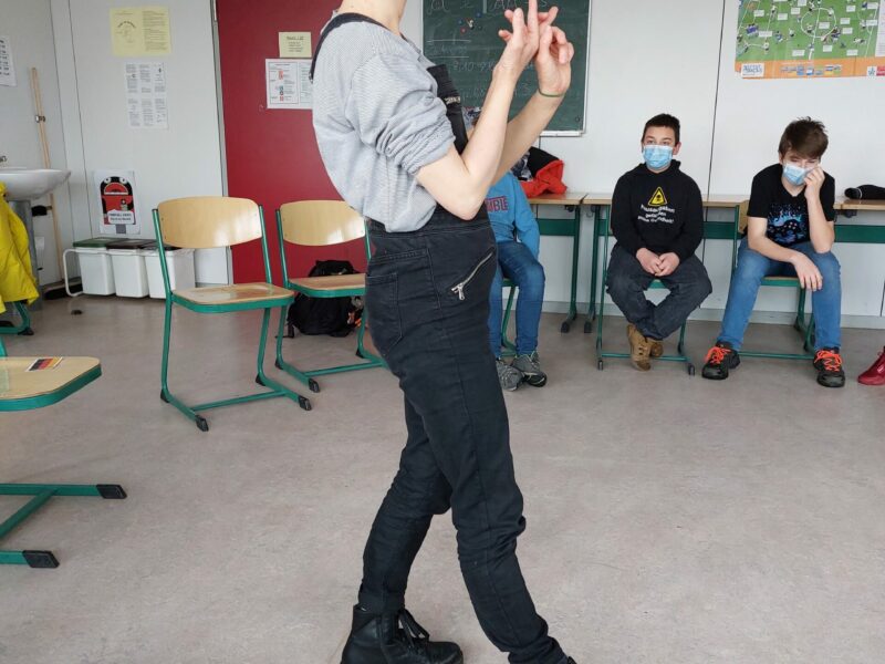 Am Freitag, den 22.04. standen an der Oberschule die Türen offen und die Besucher*innen, insbesondere Schüler*innen der jetzigen 4. Klassen umliegender Grundschulen, hatten zusammen mit ihren Eltern die Gelegenheit in unsere Schule zu gucken. Dabei wurden sie zunächst nach den Grußworten der Schulleitung von einem kleinen Bühnenprogramm der Zirkus AG begrüßt.