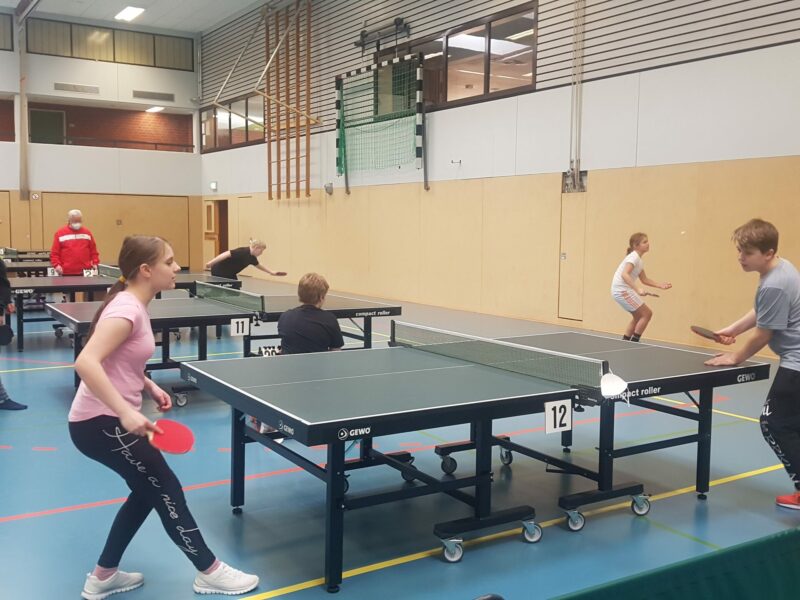 Zu einem Tischtennis-Turnier für die Klassen 5-7 hat am vergangenen Mittwoch, 23.02. der TSV Stelle in die Sporthalle geladen. Neben dem Wettkampfgedanken stand eindeutig der Spaß im Vordergrund. Sollte es doch Gelegenheit für interessierte Schülerinnen und Schüler geben, den Tischtennis-Sport kennen zu lernen. Und so wurden auf insgesamt 10 Platten in verschiedenen Altersklassen spannende Spiele ausgefochten. In verschiedenen Runden wurden letztendlich die 4 Besten der jeweiligen Jahrgänge gekürt, die sich gleichzeitig für ein weiteres Turnier qualifizierten. Herzlichen Glückwunsch! Gratulation am Ende jedoch auch für alle Sportler*innen, denn eins ist ja ganz klar: dabei sein ist alles!