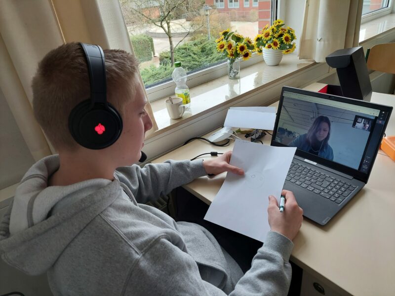 Der Wettbewerb zur Gestaltung des Logos war nur ein Teil des Programmes, was die Schüler*innen der Mitgliedsschulen bisher gestaltet und mit Leben gefüllt haben. So standen die jüngsten, durch die Corona-Pandemie immer noch digitalen Projekttage der Partnerschule aus Maribor in Slowenien unter dem Motto des Gastgeberlandes „Happy mind, happy life“. Im Fokus der gemeinsamen Aktivitäten stand hierbei die „Achtsamkeit“, die in verschiedenen Teamarbeiten und Übungen thematisiert wurde. Alle Veranstaltungen des Austausches finden in englischer Sprache statt. „Wir haben uns in Rahmen unseres 14tägig stattfindenden Erasmus Clubs in der Schule auf bestimmte Sprechanlässe, wie z.B. Vorstellungsrunden oder Präsentationen gezielt vorbereitet und sie geübt. Dabei ist die besondere Herausforderung auf das real gesprochene Englisch der Teilnehmer*innen zu reagieren, das ist kein Schulbuch-Englisch. Doch gerade das ist ja auch die sprachliche Herausforderung neben der Knüpfung neuer, zwischenmenschlicher Kontakte“, berichtet die zuständige Betreuerin Dörthe Pieper. Zusammen mit Martin Werner haben sie das Austauschprojekt an die Oberschule geholt und zeigen sich über den bisherigen Verlauf hoch zufrieden. „Nach anfänglichen Rückschlägen durch die Coronabeschränkungen war ein direkter Austausch wie geplant bisher leider nicht möglich. Daher sind wir auf digitale Formate ausgewichen. Diese sollen und können den direkten Austausch nicht ersetzen, haben sich aber als sehr gewinnbringend erwiesen und unheimlich Spaß gemacht. Es ist toll zu sehen, mit welchem Engagement sich die Teilnehmer*innen in das Projekt einbringen“, so Werner.