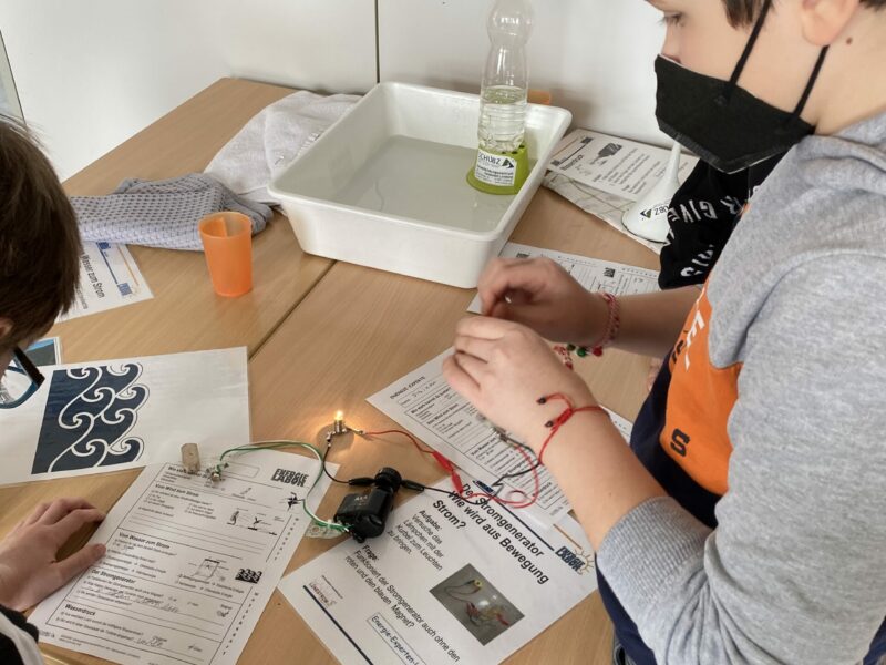 Wie funktioniert Wasserkraft, wie viele Geräte kann man mit Windkraft gleichzeitig betreiben und warum sind Kohle und Erdöl keine guten Energiequellen für die Zukunft? Wie können wir Energie sparen und was ist das Problem bei Atomkraft? Diese und weitere Fragen hat die Klasse 5b im Rahmen eines Projekttages in Zusammenarbeit mit dem SCHUBZ (Umweltbildungszentrum der Hansestadt Lüneburg) in vier verschiedenen Stationen erarbeitet. Zum Thema „Energielabor“ wurden die Bereiche „Wasserkraft“, „Windkraft“, „Solarenergie“ und „Strommix in Deutschland“ durch interaktive Stationen aufbereitet und die Kinder konnten sich in Kleingruppen ausprobieren. Elektroautos wurden auf Vor- und Nachteile überprüft und es wurden Verhaltensweisen im Alltag gesammelt, wie wir sparsamer mit Energie und Ressourcen umgehen können.