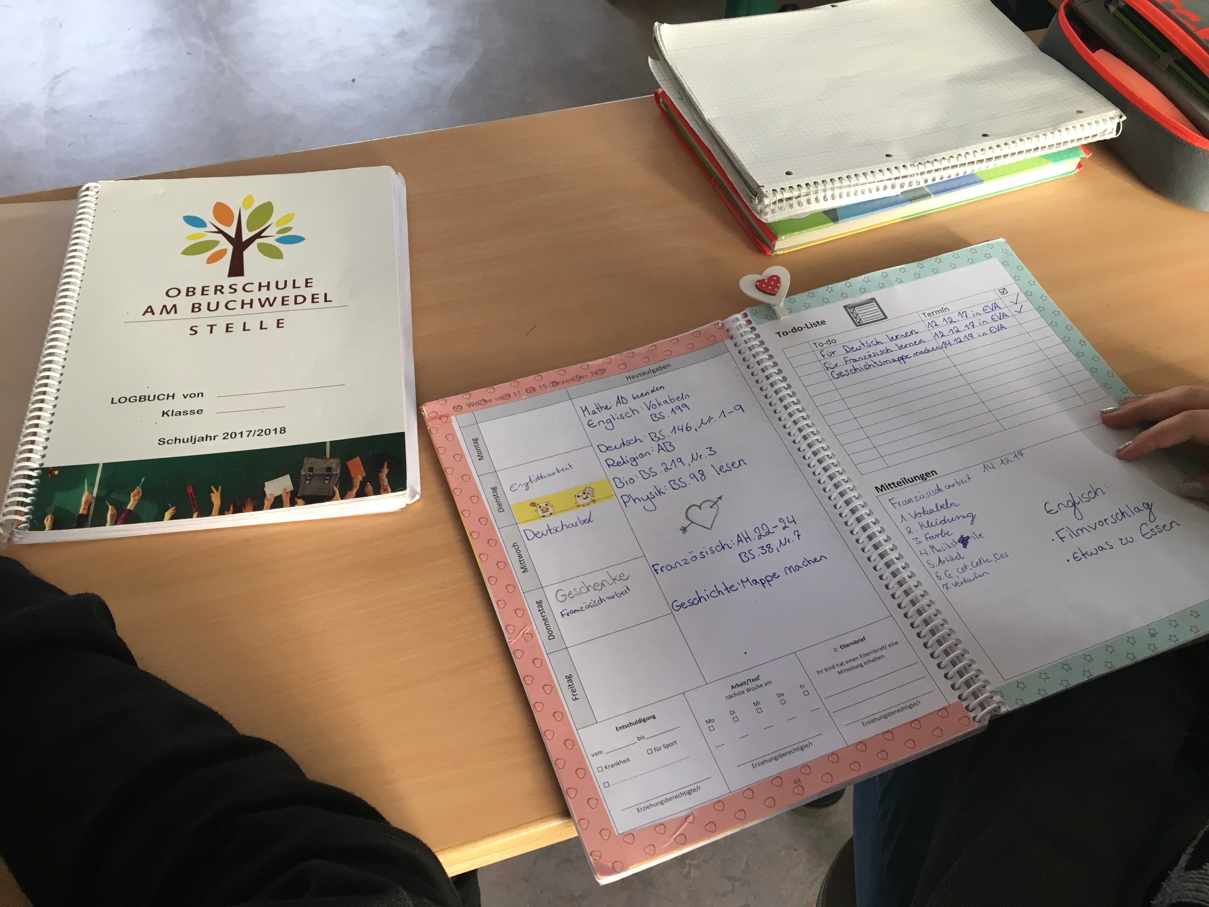 Alle Schülerinnen und Schüler führen ein Logbuch, in dem die (Haus)aufgaben notiert werden.