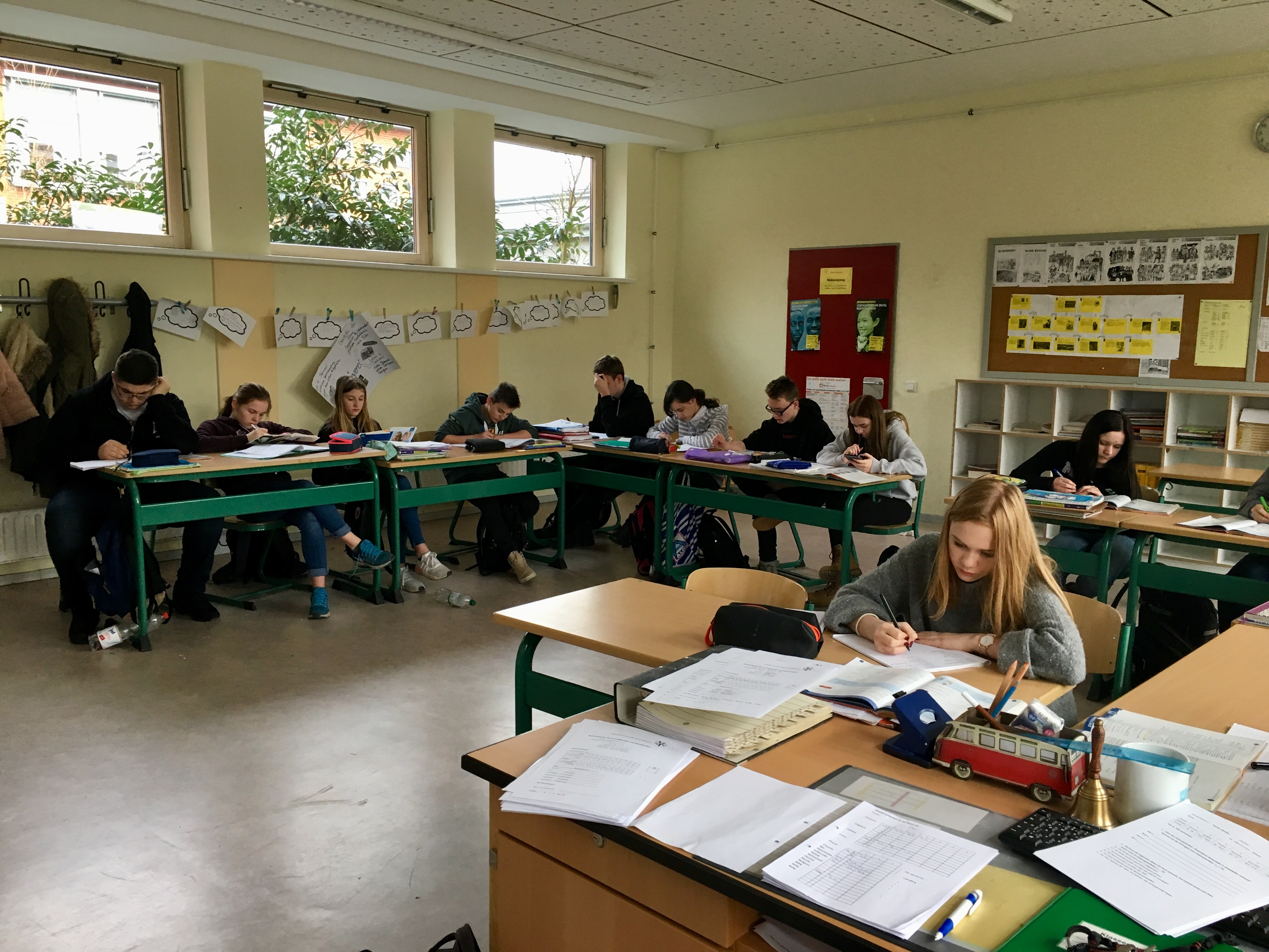 Die EvA-Stunden laufen immer nach dem gleichen Muster ab. Die Stunde beginnt mit einer kurzen „Kramzeit“, in der sich die Schülerinnen und Schüler für die anschließende Stillarbeitsphase organisieren und das notwendige Arbeitsmaterial bereit legen. Die Stillarbeitsphase dauert mindestens 15 Minuten. Anschließend kann allein, mit einem Partner oder in der Gruppe weiter gearbeitet werden. Für klärende Fragen steht die Lehrkraft zur Verfügung.